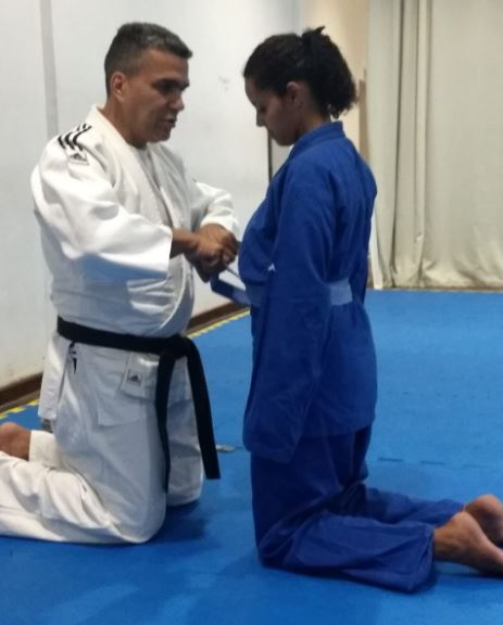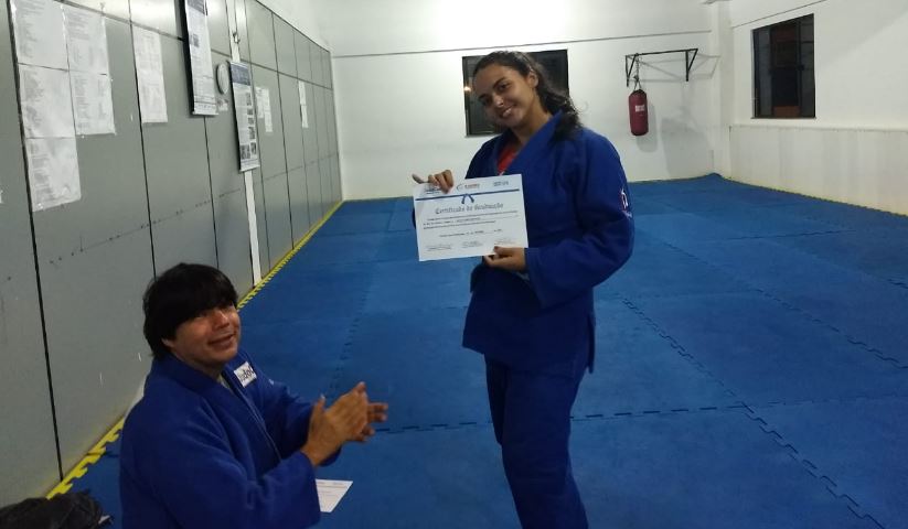No Centro de Treinamento do Tênis Club de Campos, Meirilane Coelho Fernandes da Silva da Associação Desportiva Viva Saudável (ADVS) e aluna do professor Arthur Souza do Carmo, recebeu do professor Manoel Leandro sua nova graduação a Faixa Azul.