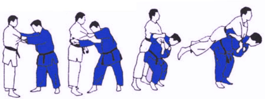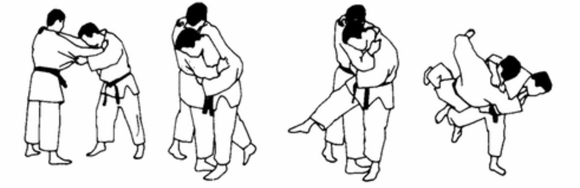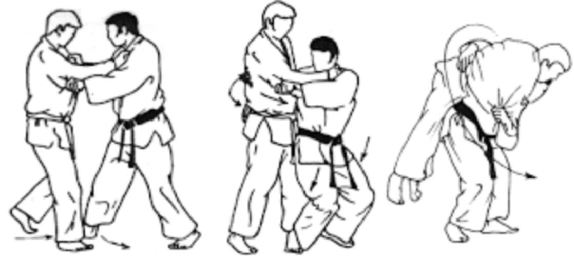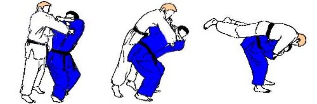 Segura o Judogi (kimono) do adversário, sendo uma mão no peito e outra na manga, a perna a frente é do mesmo lado da mão que está no peito, coloca a perna da frente flexionada na ponta do pé na frente do pé do adversário, (como fosse em x), puxa do o adversário para frente para desequilibra-lo, o braço da mão que está na gola, você solta a gola e abraça pela axila o braço do adversário que é seguro pela manga, simultaneamente a perna de trás vai virando junto com o corpo para que suas pernas fiquem no meio das pernas do adversário, flexionadas e abertas a largura do seu ombro, complete o golpe levantando e derrubando o adversário para frente no sentido de uma rotação do corpo.